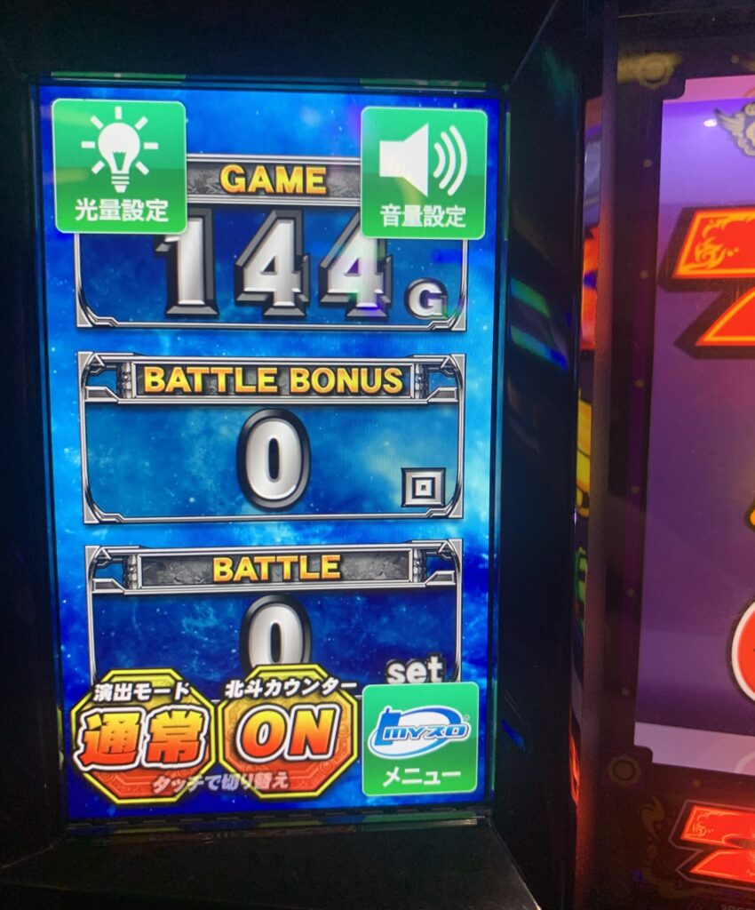北斗天井2連後に打てる台なく、若干イライラしながら1時間ほど見にまわってようやく確保しました。
